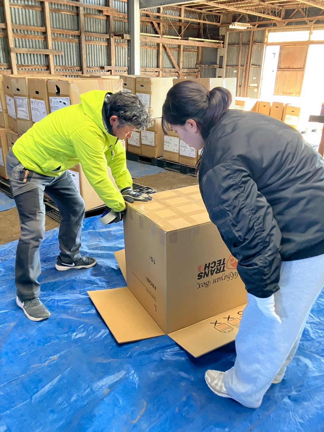 今回は、フィリピンマニラに贈る靴や衣類をバリクバヤンボックスという箱に梱包するお手伝いをしていただきました。